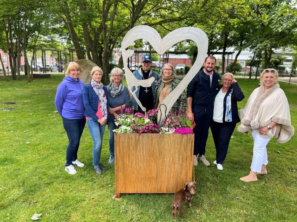 Eileen Jappsen (Familienzentrum Sylt), Annika Feldmann (Henner-Krogh-Stiftung), Angela Sehlert und Frank und Iara Fidrowicz (Fissimo Sylt), Simon Kopp (Vorsitzender Schul-, Jugend-, Kultur- und Sportausschuss Gemeinde Sylt), Tina Haltermann (Bürgermeisterin Gemeinde Sylt) sowie Frauke Wehrhahn (Gemeinde Sylt).
