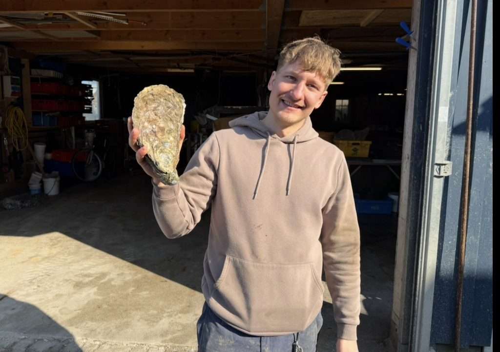 Richard von der Austerncompagnie hat im Wattenmeer ein Exemplar entdeckt, das man getrost als den Godzilla der Nordsee bezeichnen darf: Eine Wildauster mit einem Rekordgewicht von rund 1,4 Kilogramm.