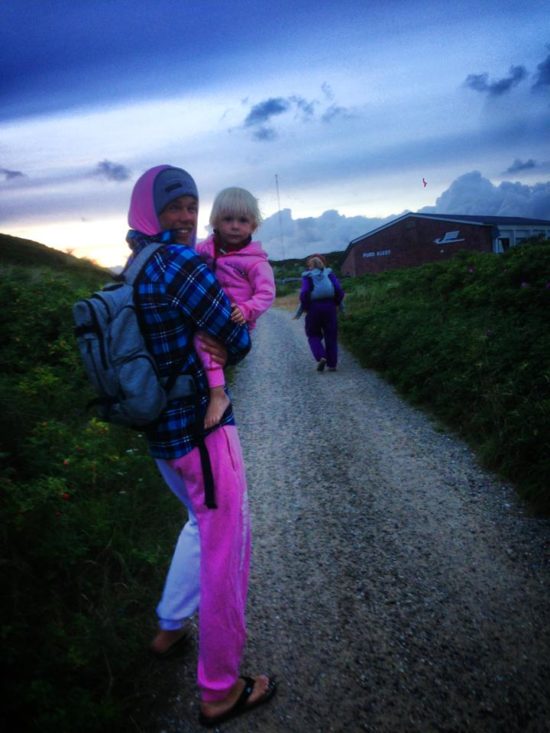 Als die Sonne untergegangen war, drehte der Wind ganz leicht ein, und am Horizont begann ein magisches Wetterleuchten. Es waren Gewitter, die sich weit vor der Küste austobten. Das Rumpeln des Donners konnten wir nur erahnen. Mit dem aufkommenden Westwind zogen ein paar Regenwolken heran, und es wurde ein wenig frischer. Wir waren mittlerweile müde, es muss nach Mitternacht gewesen sein. Jeder suchte sich einen Unterschlupf. Strandkörbe wurden als Regenschutz umgestellt, und der ein oder andere kroch unter die Boote, die die Makrelenangler dort haben liegen lassen. Wir schliefen mit dem leichten Geprassel des Regens auf die geflochtenen Strandkörbe ein.