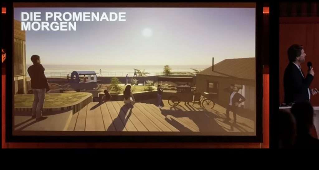 Die Kurpromenade in Westerland ist mehr als nur eine Flaniermeile; sie ist das Herzstück Sylts, ein Bollwerk gegen die Nordsee und eine Bühne für unzählige Urlaubs- und Inselmomente. Am vergangenen Mittwochabend wurde für diesen ikonischen Ort eine kühne Zukunftsvision präsentiert, die so schnell für Gesprächsstoff sorgte, wie sie auch wieder in der Schublade verschwinden wird. Der Hamburger Architekt Tim Schierwater stellte auf Initiative der „Sylter Unternehmer“ seine „Vision 2030“ vor – ein Gedankenspiel, das bewusst nie zur Blaupause werden sollte. Denn vielleicht war der Entwurf ein wenig zu exotisch. Wir leben an der Nordsee und die ist sehr rau.