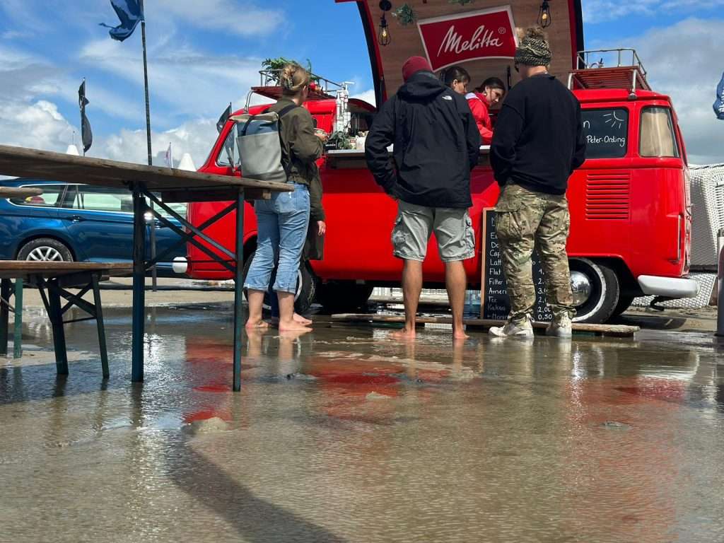 In der Nacht zum gestrigen Tag zogen starke Regenschauer mit heftigen Windböen über Sankt Peter-Ording (SPO) hinweg, was zu Überschwemmungen und leichten Schäden auf dem Veranstaltungsgelände führte. Aussteller konnten ihrer Stände nicht öffnen. Diese nahmen es gelassen und freuten sich über den freien Vormitag